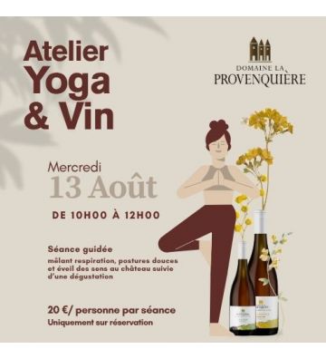 Participez à un atelier unique de Yoga & Vin, le mercredi 13 août de 10h à 12h, dans le parc du Domaine La Provenquière.