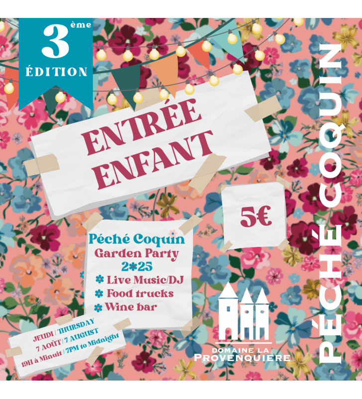 Um sicher zu sein, an diesem Sommerabend teilnehmen zu können, reservieren Sie noch heute Ihre Plätze auf unserer Website. Für 10 € pro Person erhalten Sie Zugang zur Gartenparty, Ihr Glas ist mit dem Bild des Anwesens im Siebdruckverfahren bedruckt, ein Getränk und eine Dose unserer Rosé-Cuvée „Péché Coquin“ zum Mitnehmen!