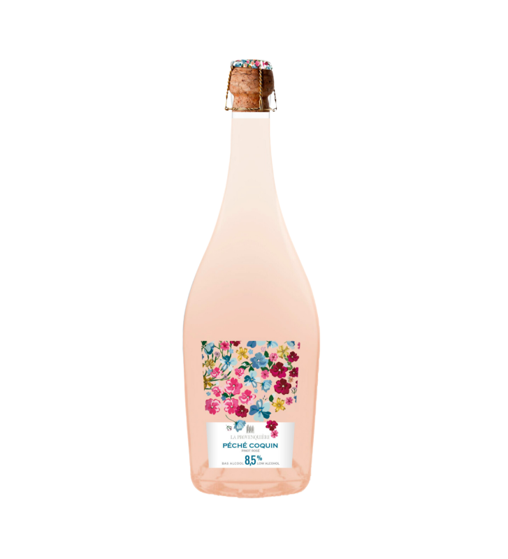 WINEMAKING: We obtain this wine naturally light in alcohol thanks to several specific winemaking stages. First of all, we choose the plots of Pinot most suitable for this type of wine. Picking is carried out earlier in the season, from the beginning of August. Thanks to these early harvests, the grapes, less rich in sugar, then produce a wine with a lower alcohol content. During a short skin maceration, the juice takes on a beautiful pale pink color. Another feature, for the alcoholic fermentation, we chose specific yeasts whose sugar/alcohol yield is low. Finally, the cuvée reaches its equilibrium thanks to malolactic fermentation, then gains in complexity during aging on fine lees. The foam intake brings a delicate effervescence.
